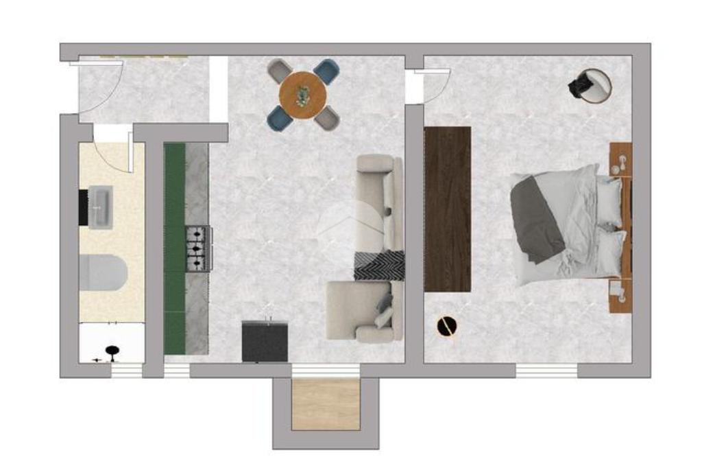 -Soggiorno con cucina a vista con accesso al balcone che dona luce naturale e uno sfogo esterno